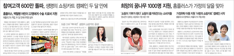 아이부터 어른까지 모두가 건강한 환경에서 모든 가정이 건강해질 수 있도록 홈플러스의 역량을 모아