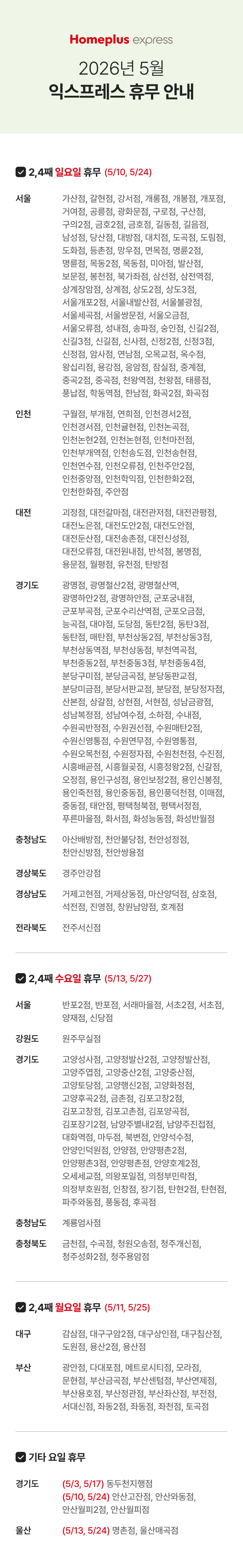 [express]홈플러스 2026년 5월 휴무 점포 안내